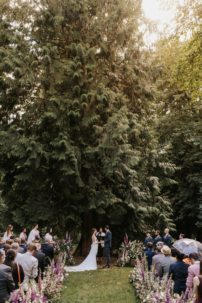 In the Pacific Northwest, there are many wonderful woodsy wedding venues. This first category is for wedding venues where you are actually among the trees for your ceremony. This usually means that the venue has worked around existing trees rather than clear an area for the venue. Lighting wise, these venues might be more shaded and it will be darker in under the trees earlier because you are in the forest.